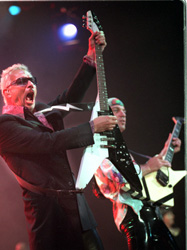 As the symphony exited, and the crowd started to shuffle toward the door, the Scorpions came back for one last song. After opening the concert with "Hurricane 2000" (a reworked version of "Rock You Like a Hurricane"), the band performed its second encore without the symphony and closed out the night with a fiery, unrestrained version of the song.