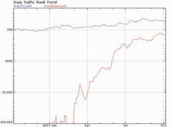 The website counts more than 2 million sign-ups in its easy-to-navigate matrix. According to Internet measuring firm Nielsen/NetRatings, Friendster logged 532,000 visitors in June, 675,000 in July and 961,000 in August. According to the Alexa rating service, it's already one of the Top 100 most visited English language sites on the web. (Match.com is at No. 23.)