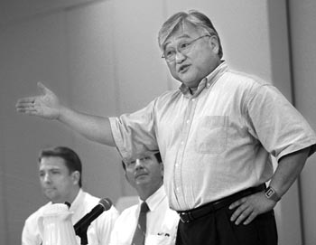 Hearts and Minds: The race for the 15th Congressional District seat, which represents the district from San Jose to Scott's Valley, has been the target of a costly battle between Republicans who want to maintain their house majority and Democrats who want to take it away. Both Democratic candidate Mike Honda (right) and Republican candidate Jim Cunneen (far left) have tried to woo the support of the valley's high-tech elite.