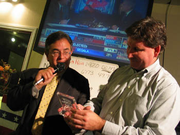 Election night in Palo Alto was a night of contrasts. Stately cocktail drinking versus something that resembled a college tailgate party; style and pizzazz versus old-fashioned earthiness. Milk chocolate bars with the candidate's name stamped on them versus homemade goodies on paper plates. However, the little guyIra Ruskin, in this casewas looking to take home the prize. At midnight, his campaign staff boasted to Fly that he was ahead by four points, but his opponent had yet to concede. That opponent for District 21's assembly seat, Steve Poizner, was the same Steve Poizner who spent $5.8 million of his own gelt to run. Predictably, the candidates' parties were strikingly dissimilar. Poizner's gala was held at Palo Alto's Sheraton. Ruskin was headquartered out of the shabby Democratic Party offices just three miles down the road, next to Happy Donuts, Ernie's Liquors and Coin Wash, a local laundromat. At about 7:30pm, the Sheraton's Oak Room was still relatively empty, and Poizner supporters didn't start trickling in until close to 8. The chef for the evening, Frenchman Pierre Arcè, however, prepared a spread that ran somewhere in the the $15,000-plus range. Starbucks coffee, soda (tiny glass bottles of Coke and Sprite), water was free; alcohol required producing a wallet with some money in it. The treats for Poizner's supporters included a platter of local cheesesgoat cheese, Brie, gorgonzola, Monterey Jack, sliced fruit, Italian brouette, grilled Portobello mushrooms, smoked trout on cucumber, canapé with Brie and Napa Valley grapes, Dungeness crab salad, California sushi with pickled ginger, sea scallops wrapped with turkey bacon, coconut beer battered prawns with mango chutney and a carving station with prime rib. Down the road, Ruskin's group chowed down on KFC out of cartons, crackers, chips and salsa, and beer drunk from cans or plastic cups. DJing for Poizner was Raffi Nalvarian, an Armenian-American better known as King Raffi of Mix 106.5. It was Nalvarian's first political gig and he wasn't about to get partisan. "The bottom line is that whoever wins, their supporters are going to be happy," King Raffi told Fly when asked if Republicans party better than Democrats. "If Poizner wins, then the people here will be tearing it up." A little later, he did concede a degree of political ambivalence: "I was tired of both Bush and Kerry," he said. "I was saying on the radio, wouldn't it be a lot easier if kids ran the country?" Others at the event weren't as hesitant in taking some digs. "We're not at Barbara Boxer's party," said David Douglas, a health care venture capitalist. "That's a botox party. They're probably giving Botox injections over there." Jerry Lami, owner of Mulligan's Pub & Grill in Redwood City and an old friend of Poizner's, nodded his head in agreement. "The guy [Poizner] is a billionaire," Lami gushed. "He's got a billion dollars sitting in the bank, and I'm guessing he's making $100 million dollars a year just off the interest." Joe Simitian, easily winning a state senate seat, ambled into the party at about 9:30pm to a rousing round of applause and whistles. Minutes before, Ruskin, himself, entered the scene, but melted into the background, waiting for a Poizner concession. Simitian, sporting a golden tie, looked visibly drained. "I'm ready to call it a day," he admitted. Did he party or work more on Election Day? "I spent most of my day thanking people," Simitian cleverly responded.
