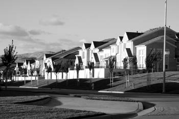 Designed by the San Ramon-based Dahlin Group, and built by Shapell Industries, the 865-acre development known as Evergreen Village features an average of four to five single-family homes per acre. These one- and two-story homes range from 1,823 square feet to 2,763 square feet, have three to four bedrooms, two to three baths, two- and three-car garages, and sell for $617,000 to $726,000. As of July of this year, the median sale price for a home in California was $383,320.