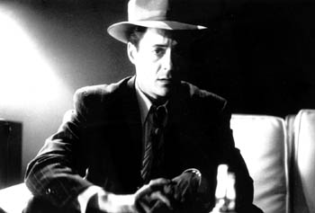 IN THE FILM version of the 1986 BBC TV series The Singing Detective, Robert Downey Jr. plays Dan Dark, who meets danger in the form of a beautiful woman and a repulsive skin disease. Dark, a hack writer with a vicious case of psoriatic arthropathy, is unable to move or write. The delusional patient, not quite sane from his pain medication, begins thinking out a new adventure of his detective/nightclub singer. While the 1986 version, "Philip E. Marlow," sang torch songs, Downey's Dark favors '50s vocal rock. In between gigs, the "Warbler" stumbles into a case of Commies and blackmailed atomic scientists, gunmen (Adrien Brody and Jon Polito) and a prostitute marked for death. But the real case--the one he's trying to forget--is teased out of him by a dowdy Midwestern psychiatrist (Mel Gibson). It's the big mystery he's been unable to solve.