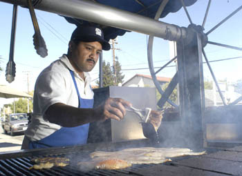 The brick-encased mesquite grill outside the restaurant tells you that they mean business. Walking up to the restaurant and catching a noseful of fish on the grill accelerates my appetite. The grill master bastes and grills the fish and then passes orders through a small window into the restaurant. At any given time, there are nearly a dozen kinds of fish and shellfish availablesalmon, red snapper, scallops, prawns, halibut, ahi, catfish, etc. The fillets are sprinkled with a salty, slightly spicy barbecue rub. It's a simple preparation that allows the fish to speak for itself. The generous portions are served with rice and steamed vegetables for roughly $8 to $9. It's a real bargain.