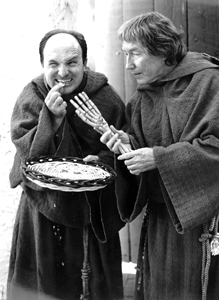 Not unlike the ruthless marketing forces behind Santaland, the monks in Michael Hollinger's medieval farce, Incorruptible, learn the power of packaging. San Jose Stage Company's holiday offering concerns a group of resourceful 13th-century French monks who dig up some "miracles" to save their foundering monastery. When the good brothers of the Priseaux monastery cross paths with a cunning minstrel, the monks find a Machiavellian way to fill their empty offering plate. Poverty, after all, not only leaves the priests starving, but their needy parishioners, too. So the brothers get into the relic business, furnishing--for a fee--churches across Europe with the highly prized bones of saints, all found, oddly enough, in the Priseaux monastery's very own churchyard.