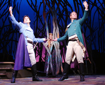 Happy Agony: Princes Patrick Leveque (left) and Michael Hunsaker raise their arms in song for 'Into the Woods.'
