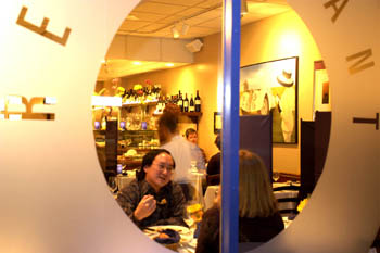 The tasting idea allowed us to sample three red wines and still drive safely home. An opulent, untamed Primitivo 2000 from Salamandre ($9) and a glass of huge, velvety Ridge Zinfandel Sonoma Station 2001 ($8) started us off, along with some of the tenderest foccacia imaginable. One small suggestion; while the amuse bouche of salmon mousse was lovely, those small complimentary glasses of sweet bubbling wine, holdovers from the Buca days, invariably dull the appetizer. Given the skill of the kitchen, they are unnecessary. Luckily the charming, fresh Euro-bistro interior--lots of linens, small tables, splashes of colorful liqueur posters and an exhibition kitchen--remains intact.