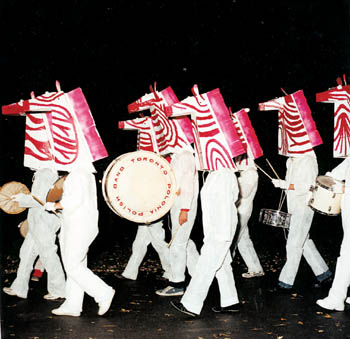 It occurred to Burke that presenting work on a stage allowed for use of three-dimensional space. "I started thinking about what this could mean," she says. "Around the same time, I had an art opening on Halloween for a series of drawings in pencil crayon and neon spray paint. The images were mostly of zebras, meercats and floating faces."