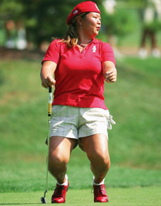 Yet for all her accomplishments, Kim's arrival on the greens signals an even more significantbut less tangiblechange. For a game steeped in tradition and reserved tranquility, Kim is an anomaly in the LPGA; she's an outspoken character who prefers tight and bright to button-down and beige. She wears wool Kangol hats, twisted backward B-girl style. She shops at Hot Topic and describes herself as a "hip-hop goth." On the fairway, she keeps things light, cracking risqué jokes and expressing emotions, pumping her fists or taunting a sunken putt like an Ultimate Fighter hovering over a KO'd opponent. Like Rodney Dangerfield's Caddyshack character Al Czervik, Kim has shaken up the staunch LPGA with the subtlety of a Hummer golf cart customized with bass cabinets, 22-inch spinners and periscope tap of Patron (her drink of choice).