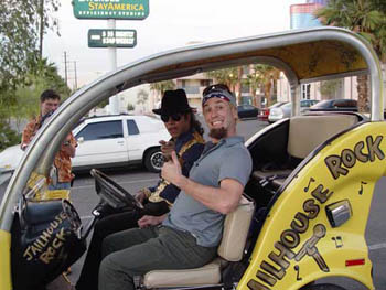 "Michael, time to get back in the cart," I instruct to his dismay. He is thoroughly enjoying his moment in the sun. We once again speed off in our yellow electric golf cart into the Vegas setting sun and the glow of the early evening glittering lights.