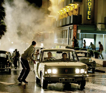 There is quaintness in the Cold War�era equipment: a pre-cybernetic phone bomb and some plastic explosive that's either too weak or too strong. Munich almost functions as action cinema, but the force is diluted by conversations you can't believe you're hearing. Avner asks a Palestinian named Ali if he really does want his grandfather's chalky land back, with his much-wept-about olive trees. Later, the international hit men are made to realize it's not a cause but a home that they're all killing for. Worse, perhaps, is a flatulent pantomime scene that says, "Arab or Israeli, they both love Motown."