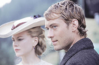 Kidman is an excellent reactress, a master of the sidelong glance--a woman who's startled like a deer at human clumsiness. But Kidman seems--finally--remote. She's always excelled at uncanny parts: the maid in The Ghosts, her ice maiden in To Die For, her macabre Virginia Woolf, gazing at her own fate in the form of a dead sparrow: nothing is as dead as a dead bird. What is it about the chilly Kidman, with her Miz Scarlett mannerisms, that would make a man come back from the dead ... and keep coming back from the dead, as Inman does?