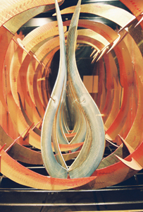 These mirror-reliant works, created for Antenna's "Euphor!um"--a virtual reality riff on Coleridge's "Kubla Khan" mounted in 2002 in London--are intended to confuse the brain and engage the viewer. "I'm basically interested in the idea that you are involved in the making of the art, in that your perception system provides the image that you need it to see," Hardman says. Gesturing to the artwork, he points out the minute sliver of space where the sculpture leaves off and the mirror begins. The congruence is difficult to find without help. "It's so hard to see the mirror, and your brain is telling you to give it some symmetry," he says, smiling for the first time this morning.