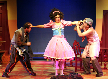 Theo's concerns are not unfounded. With the appearance of two boarders, the buffoonish poet Frank Versati (Paul Huberty) and the sickly barber Benjamin Cohen (Brian Levy), it becomes clear that the dropped underpants were not only seen, they have made Louise famous and have consequently inspired the lustful attentions of the Maskes' new roommates. Louise, we learn, has not had sex since her wedding night and, strongly encouraged by her upstairs neighbor Gertrude (Liz Jahren) to take a lover, attempts to juggle the schedules of the three men in her house so that she can engage in some extramarital sausage warming (don't blame me, it's in the script!), all of which goes terribly wrong, of course.