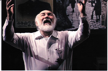 That said, Pfandler sends the cast back to work. After imbuing "Ale Brider" with the proper degree of roughness and believability, they move on to another Yiddish song, the fiery "Es Brent" ("It's Burning"): "It's burning, dear brothers, it's burning / Oh, our poor little town is burning . . . And all of you are simply standing and looking / With your arms folded, as our little town burns."