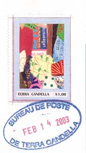 Presiding over Terra Candella, loose Latin for "land of light" (a presence more of mind than real estate), Harley serves as a guest curator in conjunction with the museum's examination of its building's origins as a post office, even going so far as to obtain an official U.S. "first day" postmark for March 8, 2003, remaining good for 30 days and available for stamping in the museum's gift shop.