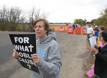 The idea for the protest started when Cindy Sheehan set up Camp Casey near George Bush's ranch in Crawford, Texas, after the death of her son in the war. Local activists wanted to set up a version of Camp Casey in Sonoma County, but couldn't find a location before Sheehan became old news. So they decided to hold the protest on the three-year anniversary instead.