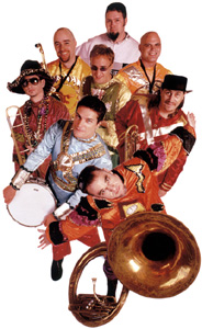 Formed in 1999 to play a Fat Tuesday party, Brass Monkey is the brainchild of tuba man Jon Birdsong (who has performed with Beck and Victoria Williams) and drummer Kevin Stevens. The band's high-octane, highly danceable music--a punkier version of the fabled Dirty Dozen Brass Band--has become a hit thanks to its wild, barely tamed nature.