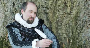 Soon thereafter, Will meets a band of traveling players and, smitten with the promise of stardom on the stage, follows them to London, where he joins the troop as a bit-part spear shaker (get it?). He is eventually introduced to Edward de Vere, the Earl of Oxford (the mesmerizing Cameron Stuckey), a flamboyantly open bisexual but closeted playwright with a stack of unproduced scripts who fears that he'd lose his standing in royal society should his name ever be attached to anything so low as the theater.