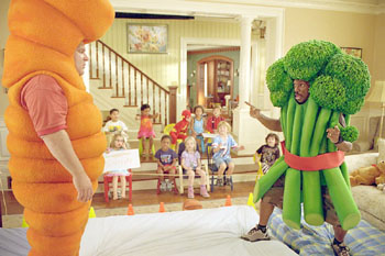 There are other similarities. In Daddy Day Care, Murphy's best friend gets kicked in the balls repeatedly. In Tell No One, somebody gets their ear hacked off. At a certain level, both stories are violent explorations of the lengths that some parents will go for their children. Sort of. Though nobody in Coben's book dresses up like a giant broccoli, as Murphy does.