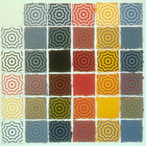 The artists working with Lasry often came up with entirely new techniques in the printing process. Minimalist painter Mel Bochner, whose work examines the ordered structure of mathematics and language, utilizes the first task of a press, that of lettering. In his monoprint If the Color Changes, a babble of overlaid German and English words, only the final warning phrase is clear: "One did not observe"--a mistake one is certain not to make in viewing the collective "Under Pressure."