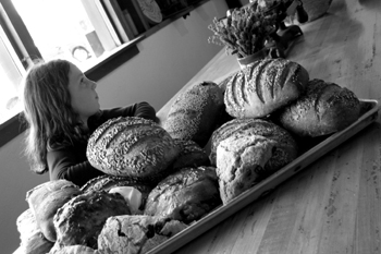 Loaves and Wishes: A young customer dreams over loaves at Freestone's Wild Flour Bakery.