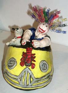 While Hipkiss is best known for her sweetly obese women, she'll happily create from wordplay and jokes as they strike her. "People phone me to sell me vacuums and I'll make them out of clay instead." The fantastical tabloids Weekly World News and the Sun are constant sources, inspiring Hipkiss to create such tributes to "news" as her ceramic version of Woman Gives Birth to 8-and-a-Half Pound Eyeball, which sold to a Santa Rosa doctor. "My daughter hates it," she reports gleefully.