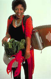 Her patented musical gumbo is flavored with such far-flung ingredients as New Orleans R&B, Latin salsa, country and western, West Coast jump blues, Tex-Mex, and sensual Caribbean rhythms. "For the most part, we do hang with the standard zydeco songs," she says, "but once in a while you say to the audience, 'Here's a treat, here's something a little bit different.' Since zydeco is a blend of music from all walks of life, you sort of mix them all in and hold on to your roots.