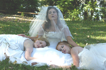 Fifty Brides for 50 Cousins: (l-r) Sigrid Sutter, Melissa Thompson, and Kelley Rose Anderson are forced into marriage.