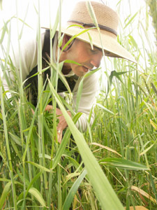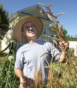 Gluten, Free: Dr. Jason Bradford harvests wheat in front of his Willits home. Bradford belongs to the town's post-peak oil group.
