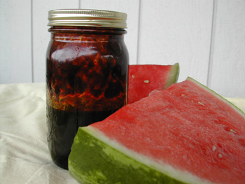 Even the Internet yielded no insights, save a mention on the Watermelon Growers Association site stating that during the Civil War, people would boil down watermelon juice to use as a sweetener.