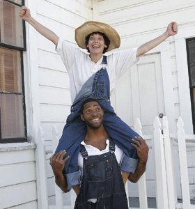 The second of three world premiere's planned for the season, Splittin' the Raft further defies expectation by turning out to be a whole lot more fun that it originally sounded. From its description, Kaiser's play--a retelling of Mark Twain's classic and controversial Adventures of Huckleberry Finn, as deconstructed by the great abolitionist and former slave Frederick Douglass--looked to be a serious, largely literary enterprise, one that would make up in intellectual bravado what it would probably lack in humor and old-fashioned entertainment.