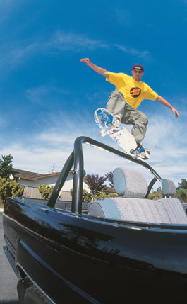 Next Tuesday, a high-octane fundraising hoedown will explode at the Blank Club, an institution frequented by many of Brauch’s fellow skaters and drinking friends. It will be a four-pronged assault on the senses: (1) Brand new footage from the upcoming DVD release will project on the wall for at least half an hour; (2) an art show including work by Jai Tanju, Lance Dalgart and Aaron Jones will grace the other walls; (3) Supercharged Eagle custom skateboards will be raffled off; and (4) a performance by RS2 Solid Sound will rock the house.