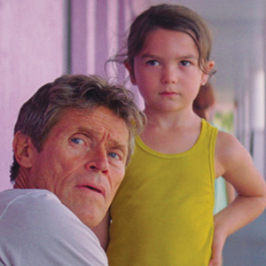 The focus is on the kids, as in a crane shot of Moonee and the little terrorists she hangs with running through the balconies. They’re Jancey (Valeria Cotto) and the third-grade boy Scooty (Christopher Rivera), a chronic mischief-maker who tries to play it urbane: “Relax, your daughter is safe in my hands.” It’s a gift to be a director so attuned to a kid’s world. But Willem Dafoe is the real star, and it’s one of the juiciest and most gentle roles he’s done.