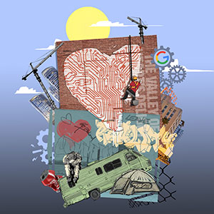 He is still wary of the official public art power brokers in Silicon Valley. “Getting funding feels like pulling teeth here,” he says. “You have to constantly convince somebody that you are worthy of their philanthropy.”