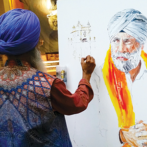 But first of all, let me introduce Narinder Singh Kapany, more commonly known around the globe as Dr. Kapany, the father of fiber optics. Kapany started the Sikh Foundation exactly 50 years ago in 1967, and he’s been collecting Sikh art ever since. Over the decades, his collection has spawned several groundbreaking exhibits on several continents, including the current one at the Asian Art Museum. All of these exhibits have succeeded in foregrounding Sikh art in the contemporary museum-patron-collector nexus. On the academic front, Kapany has personally financed multiple endowments and chairs of Sikh studies at higher institutions across the country. If not for him, none of this would be happening.