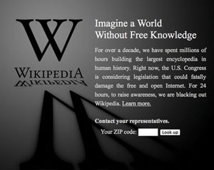 For starters, economics played a role in the high minded calls for protection of Internet freedom, and the conversion of new media sites’ front pages into advocacy platforms raised the question of whether they would do the same if their own interests were not on the line. (See Russ Baker’s sidebar on page 27.) Technology.inquirer pointed out the misgivings that some in the Wikipedia community expressed about the site’s blackout. “Today Wikipedia has abandoned one of the pillars of its existence and reduced its credibility as an ethical, unbiased source of information,” declared college journalist Matt Miller.