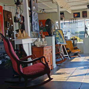 The studio opened last October in the old California Monument Company building, where tombstones were produced for the cemetery. The structure is a work of art in itself and complements the pieces hanging inside. Much of Bongiorno’s own work is featured, as well as selections from other artists that rotate on a monthly basis. The open, airy lot includes a main room and a smaller back building with two courtyards in between. Bongiorno has countless ideas for how the space can be used, ranging from poetry readings to book signings to music nights. On April 25, the gallery will host an event for photographer and photojournalist Robert Altman, who documented a great hunk of the music and politics of the 1960s for Rolling Stone.