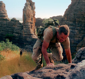 Brothers Howard J. and Jonathan Ford went from England to Bourkina Faso to direct this strangely plausible, beautifully photographed and hellaciously gory horror film. If there’s almost nothing new to be said about zombs, the fresh scenery re-energizes the myths. We may know the drill, but we don’t know the terrain. With bad roads, thorny bushes, little water and no place to hide, a pair of humans prowl a dead land. U.S. Air Force Lt. Brian Murphy (Rob Freeman) is the only survivor of the crash-landed last plane out of Africa. He is rescued by a soldier, Sgt. Daniel Dembele (played by the film star Prince David Oseia, whose presence and remarkable physique reminds one of Djimon Honsou). The two commandeer a skeletonized pickup truck and search for an airbase in a Wages of Fear-style journey to find sanctuary from the inexplicable plague of undead cannibals.