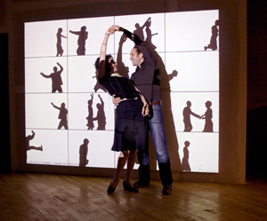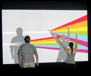 SHADOW OBSERVER: In Scott Snibbe’s Deep Walls, participants leave shadow traces in the projector beam.