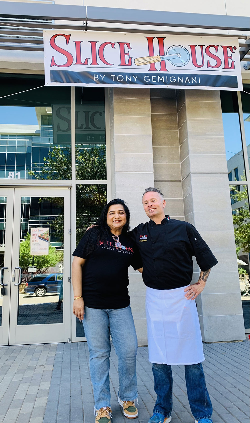 PIZZA PALS Pritika Rajasanshi, who owns the new Slice House franchise in Mountain View, went to high school with Tony back in the ’80s.