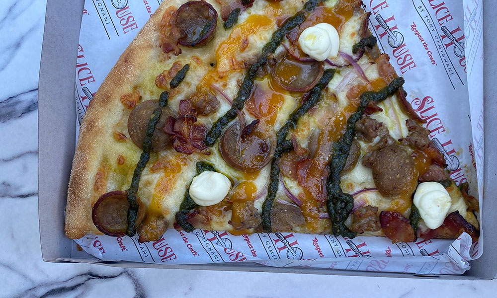 THE WORKS The Apricot Fields pizza is exclusive to Slice House Mountain View. Photo by Lisa Plachy