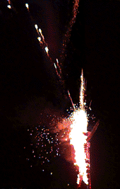 of plywood, neon lights, high explosives and kerosine-saturated burlap.