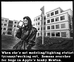 Mix that supercharged libertarianism with the Extropians' cyberpunkish dream of transforming themselves--just as we transform our miraculous machines into ever-improving models--into superior biological mechanisms capable of cheating death, thinking faster and smarter, looking buff at age 70, transcending "'natural' limits imposed by our biological heritage," flitting about in outer space, etc. Sprinkle in the upbeat pop psychology of the 1970s self-realization movement ("Extropians espouse a positive, dynamic, empowering attititude"). Season illiberally with quotations from the individualist philosophers--Adam Smith's conservative economics, Nietzsche's vision of the unfettered uberman, Ayn Rand's bootstraps-plus egotism, and the science fiction libertarianism of Robert Stranger in a Strange Land Heinlein, and you've got a glimmer of what Extropians are all about: Don't tread on me, let me find my own level, leave me to my guns, don't impose speed limits on my technology, and don't naysay the free-enterprise System. As Extropians see it, those who worry excessively about the dark side of progress tend to engage in "disasterbation," as Silicon Valley Extropian (and incessant-coiner-of-punning-jargon) Dave Kreiger puts it. Human progress for the better is inexorable, Extropians argue, if only we just let it happen. That's not to say that Extropians are waiting around for natural selection to do it's thing. Hardly. Take, for instance, Romana's assertive life extension program, typical of the Extropian plan of action. She pops vitamins, slurps nutrient-fortified powders, and drops "smart drugs" as if she were feeding "a very precious lab rat," as she puts it. Moreover, she works out, body and mind. Though she's in her mid-thirties, she emphasizes her youthful health by dressing in slinky, black ensembles that are (not accidentally) suggestive of (take-charge) bondage and domination: shimmering velvet catwoman outfits, pointy knee-high boots, lots of functional leather, chains, and laces holding everything taught and together. At her day job at Apple Computer, where she hunts for bugs in that hinky Newton thing, she sometimes sports a custom-made pair of black leather, lace-up gauntlets that double as fashion statement and therapy for carpel tunnel syndrome, the computer programmer's plague. She models on the side ("nudes, glamor photography, lingerie, that sort of thing") and has appeared in Playboy (November 1985) and in newspaper ads for Leather Masters, the San Jose sex boutique. She's even got a World Wide Web page on the Internet to promote her modeling portfolio and to push what she calls her "life extension agitprop." Of course, there's a political, very Extropian statement behind all of this apparent self-promotion: "Enjoying and profiting from what I own is fully in line with my philosophy," announces Romana, who is also given to quoting Malcolm Forbes. And after short-sighted Mother Nature revokes the youthful vigor that brings enjoyment and profit, Romana plans to cheat the Bitch by immersing her head in liquid nitrogen chilled to negative 321 degrees Fahrenheit. Romana isn't alone in this master plan--most Extropians are banking on cryonics--the currently wishful science of freezing the dead for reanimation in the more technologically capable future--to sidestep the Grim Reaper. "Cryonics is the second-worst thing that could happen to you," says Romana. "Death is the worst thing."