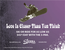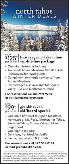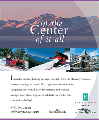 February is the month to book your Tahoe vacation. Embassy Suites is offering an incredible February special: Just $169/night include a spacious-two room suite steps from Heavenly Resort's Gondola, complimentary cooked-to-order breakfast daily, evening manager's reception, and FREE VALET PARKING for up to 3 nights. Book up to 3 nights on Feb. 12-14 and/or Feb 26- 28, 2007 (Some restrictions apply). Space is limited, so we recommend booking right away.