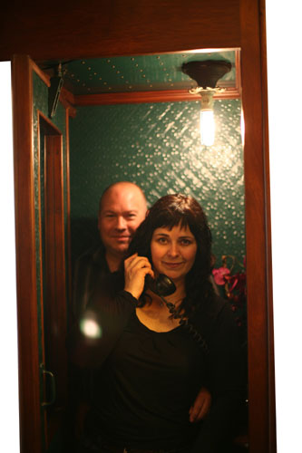 This old Zenith radio has been plugged in just once, and it got hot, smelled weird and didn't make a sound. Still, its beautiful maple casing and aviation-like controls fit right in with Flock's other furniture from the late '20s to early '40s. When he and Maly went on their first date, they wound up back at Flock's house, looking through art deco books. "I love old furniture and style," says Maly, "so I thought the house was pretty great. And I guess I might have thought he was a little cute, too." They've been together ever since. The radio was given to Flock by a neighbor across the street.