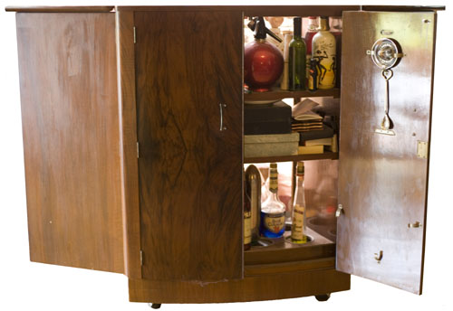Bought at an antique store in the late '80s with money from a tax return, this fold-out cocktail bar was Flock's first art deco acquisition. It was great for the small apartment he lived in at the time, and it still comes in handy entertaining guests today. Though it's seen plenty of parties over the years, the walnut casing and bird's-eye maple have never been blemished.