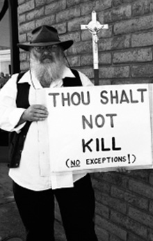 Not kill: Sebastopol, 12:56pm. A man rallies against the war at the town's weekly protest. Photograph by Chelsea Walsh.