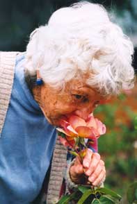 'Untitled': Bodega Bay social worker Jude Mariah captures octogenarian Doddie Spuelda enjoying the roses at the Burbank Heights and Orchards senior housing complex. Having moved here from Colorado three years ago to be closer to her family, Mrs. Spuelda is an avid horsewoman and outdoor enthusiast.