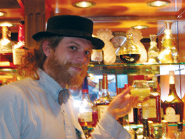 Saint Nick: Nickolas Gyorkos pours absinthe the traditional way at the Crepe Place.