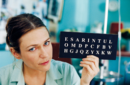 In voice-over, Bauby, played by Mathieu Amalric, mutters responses to his physicians when they say inanities like, "I'm afraid it's just one of those things." There is a consolation prize: a beautiful, passionate speech therapist named Henriette (Marie-Josée Croze). She coaxes "speech" out of Bauby's one remaining muscle, the lid of his right eye. "This is the most important job I've ever had," she says. (Michael Moore must be right about the French medical system.) Holding up a chart with the alphabet on it, the nurse allows the silent patient to speak one letter at a time.